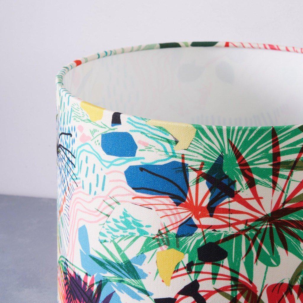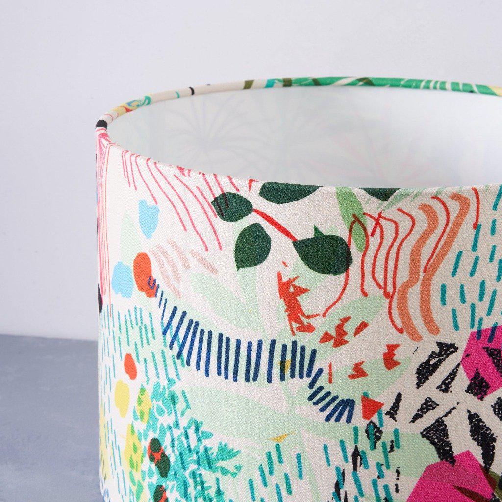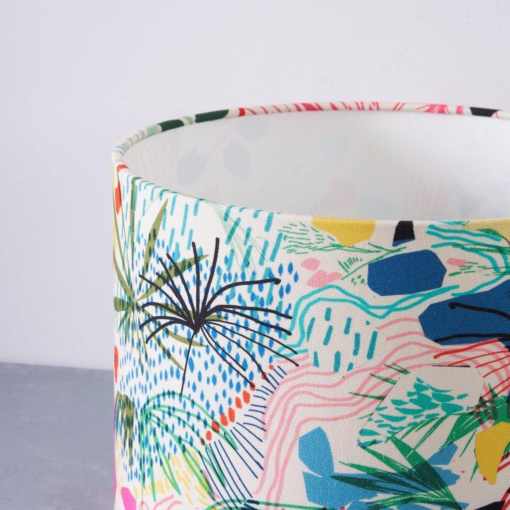 Vibrant and versatile, our multi-purpose Summer garden lampshade has a joyful print depicting a vibrant garden in the summer. The shade is rolled edge & lined with rigid flame retardant PVC, it will become a focal piece in your room, lending a striking pop of colour to your home decor.