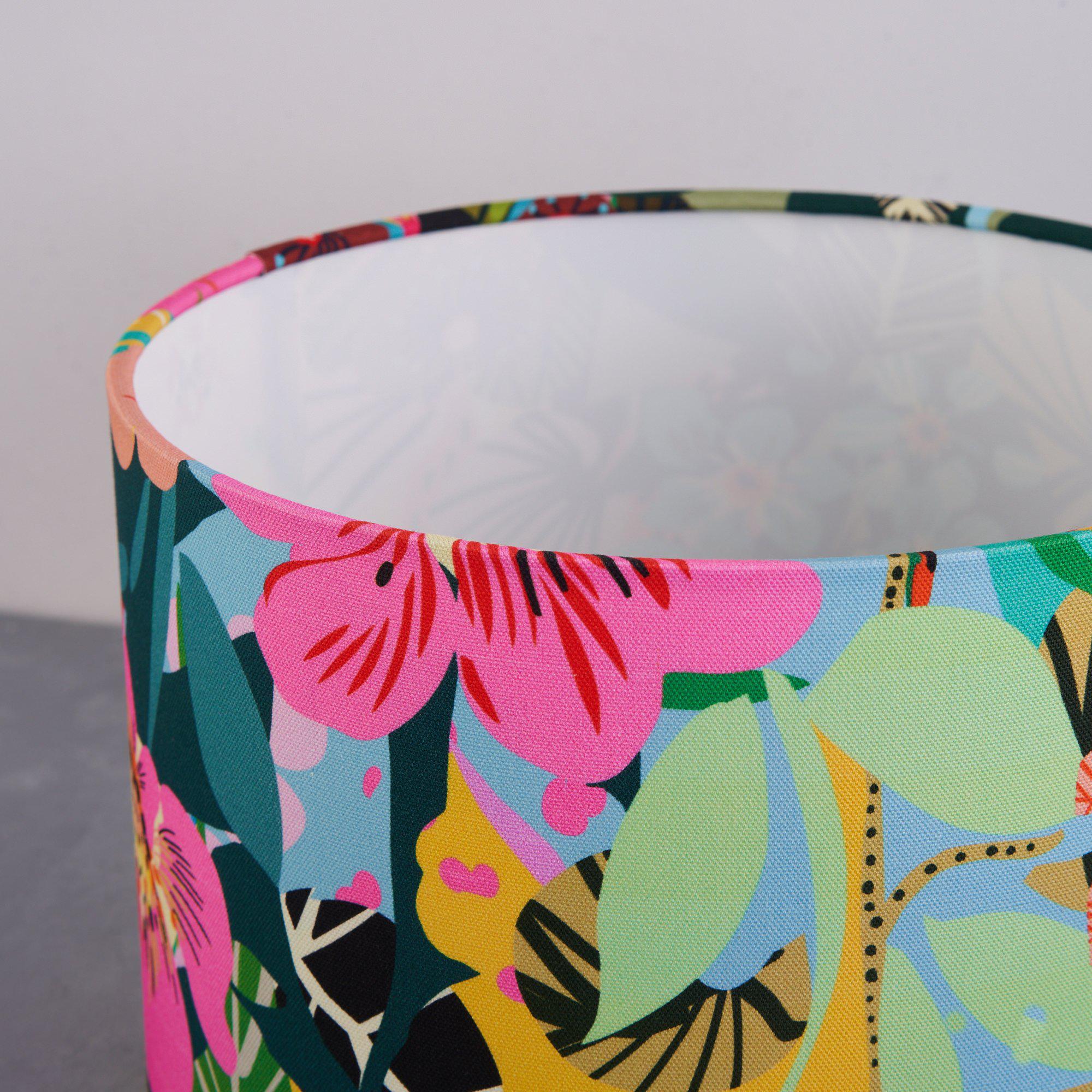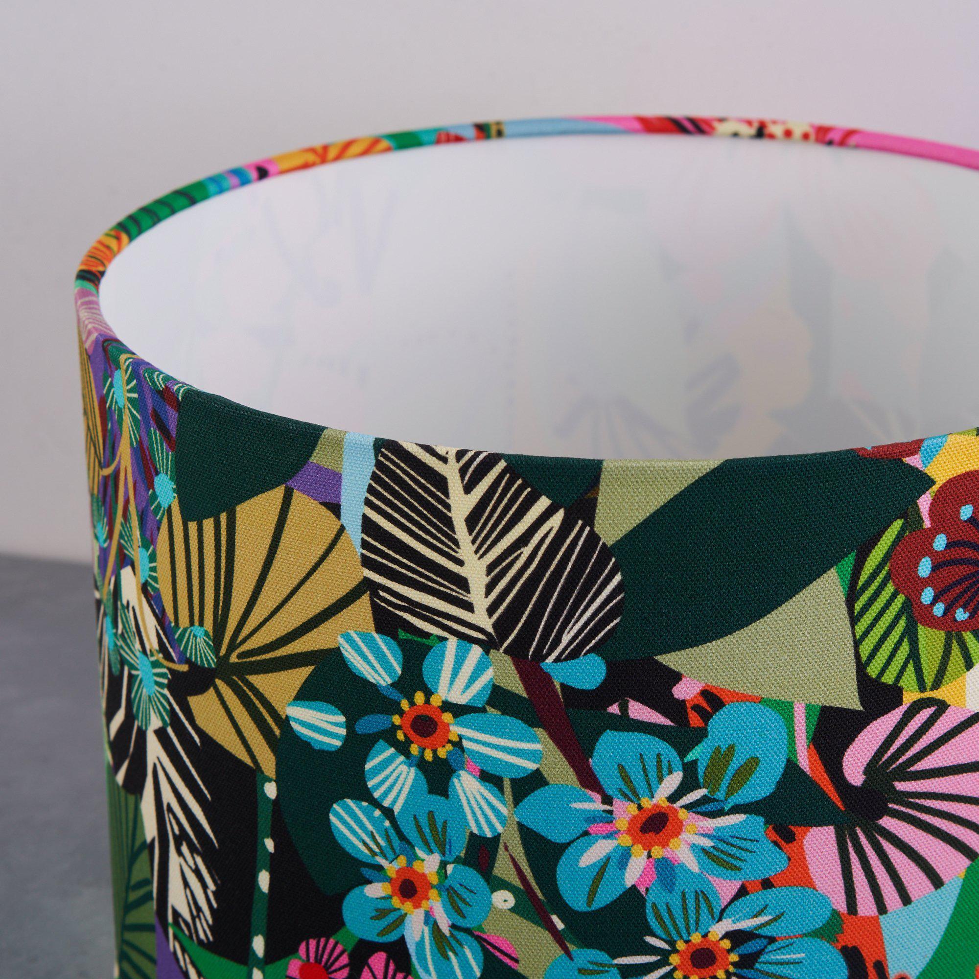 Vibrant and versatile, our multi-purpose jardin de fleurs garden lampshade has a joyful print depicting a vibrant garden. The shade is rolled edge & lined with rigid flame retardant PVC, it will become a focal piece in your room, lending a striking pop of colour to your home decor.